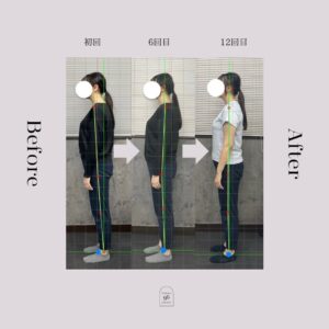 前に出ていた頭の位置が整い、膝の屈曲も改善されて、背筋がシャキッと整いました♩