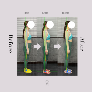 前に出ていた頭の位置が整い、膝の屈曲も改善されて、背筋がシャキッと整いました♩